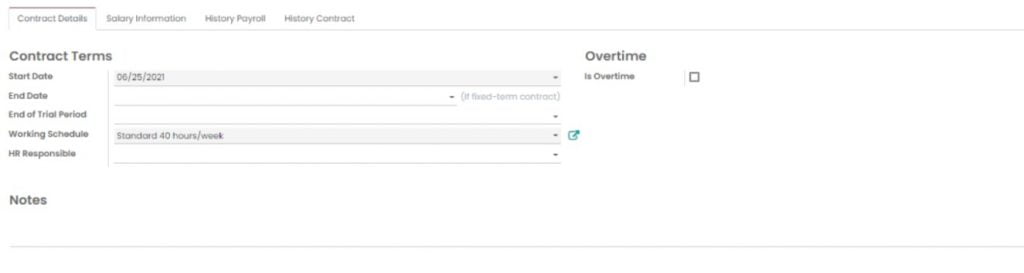 Pada Tab Contract Details terdapat field yang perlu dilengkapi antar alain: